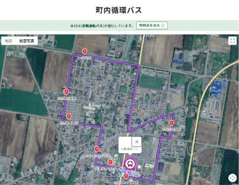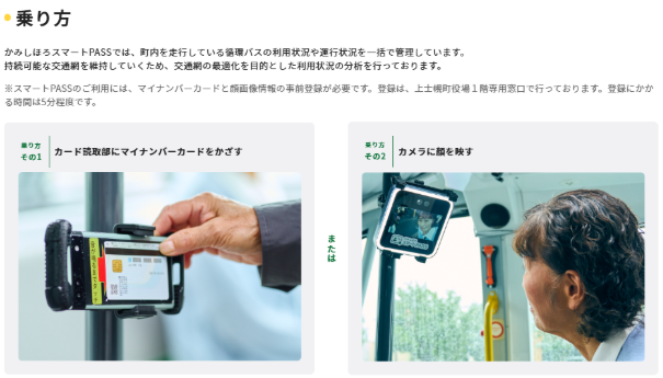 上士幌町では自動運転バスに導入し位置情報を表示しています。また、事前に登録することで顔認証やマイナンバーをかざすことで乗車が可能です。