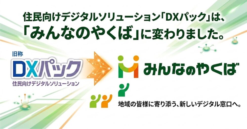 住民向けデジタルソリューション「DXパック」は「みんなのやくば」に名称変更しました。